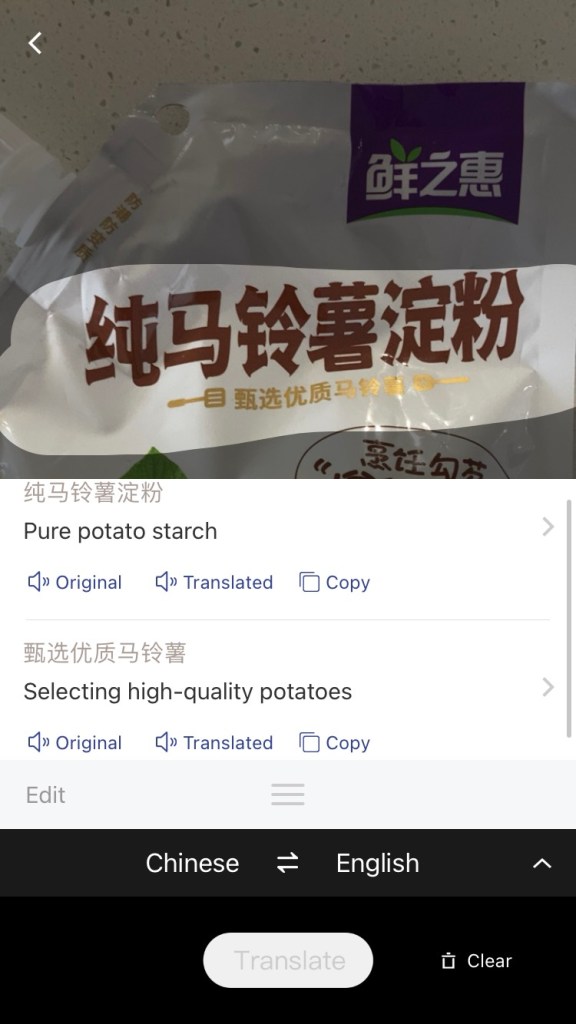 Also, you can translate Chinese pictures with the camera function, and it will translate on the picture into or from Chinese.