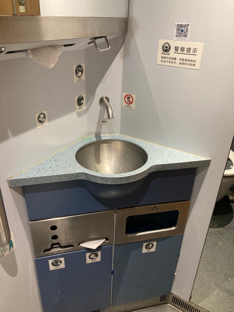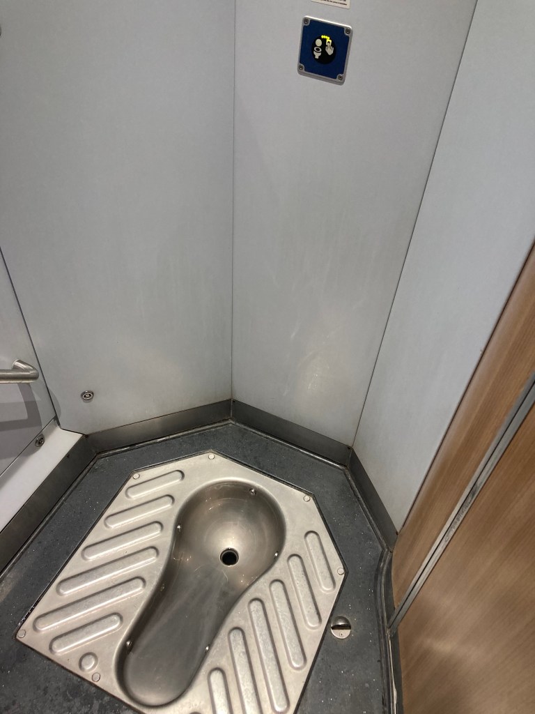 Lastly, regarding the restrooms on the train. There are sitting style and squat style restrooms. Both restrooms look clean, however, there aren’t changing tables for babies.