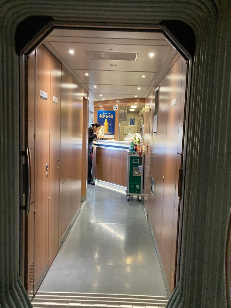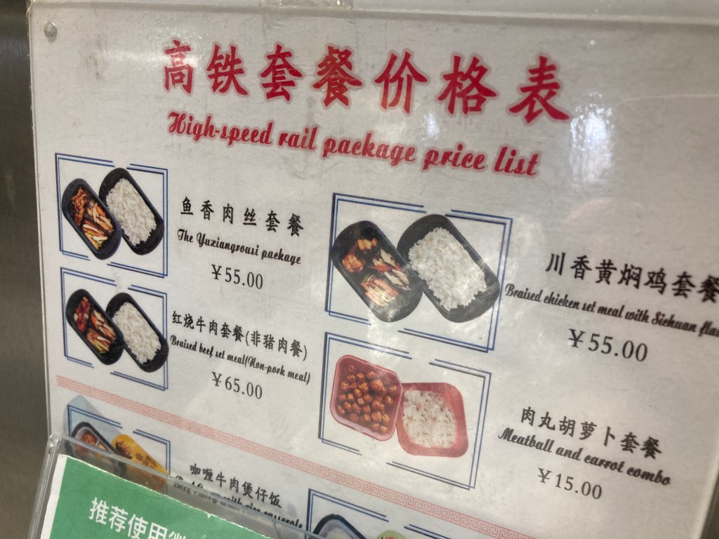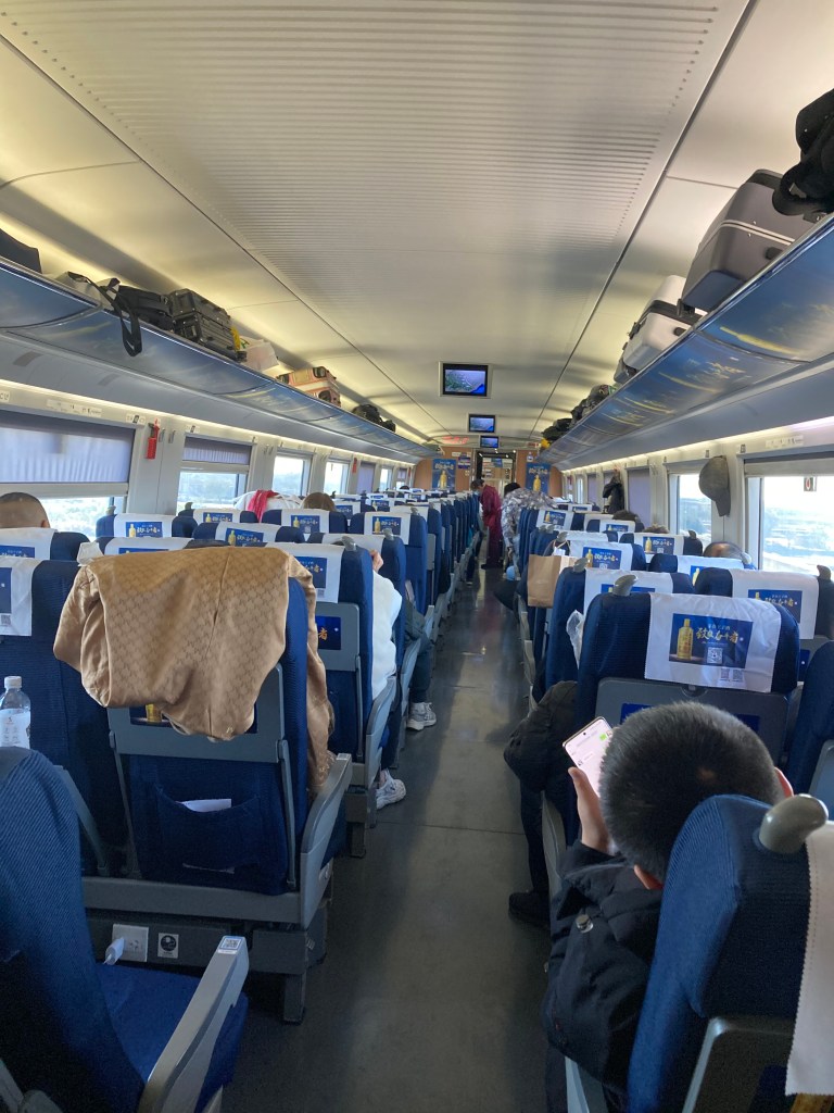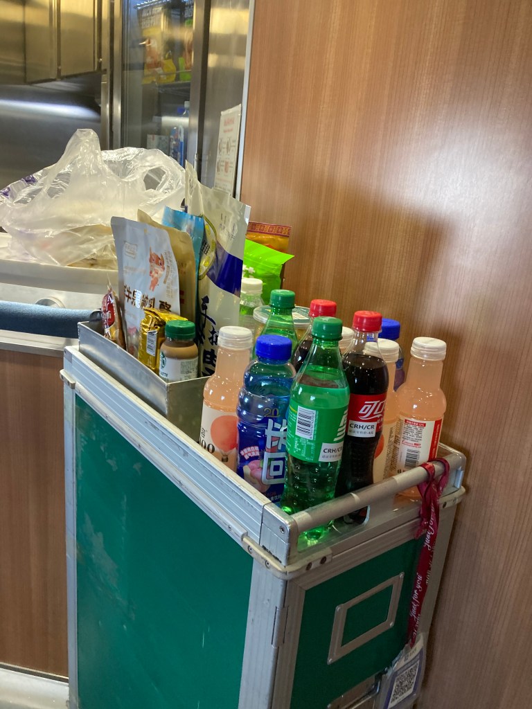 Here in the train also, you can pay with WeChat pay or Alipay. There were 4 different kinds of bentos, snacks, and drinks. I bought a Starbucks coffee, which you can say in the below photo, hehe. There was a staff person who was walking back and forth selling train bentos too. I think it would be good idea to bring some fruit and sandwiches yourself, too. There was wifi available on the train, but we couldn’t figure out how to connect to it. We tried pretty much the same steps that we usually take when we use free-wifi in public.