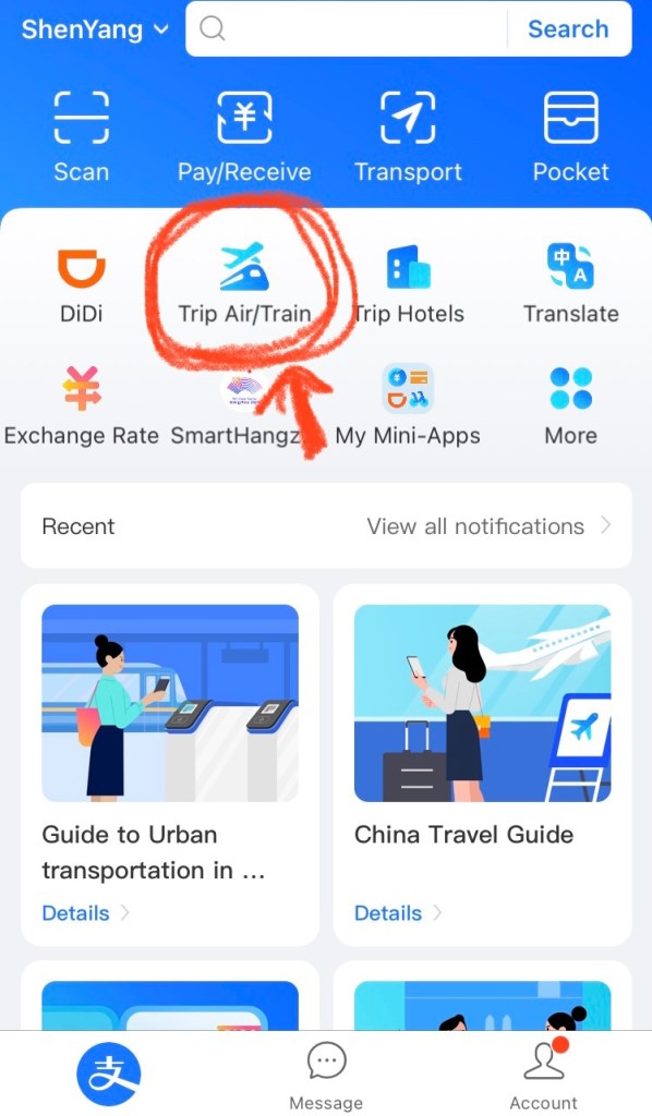 We bought our tickets with an App called “Alipay“. We use Wechat a lot too, but Alipay is more dedicated for some kinds of payments.