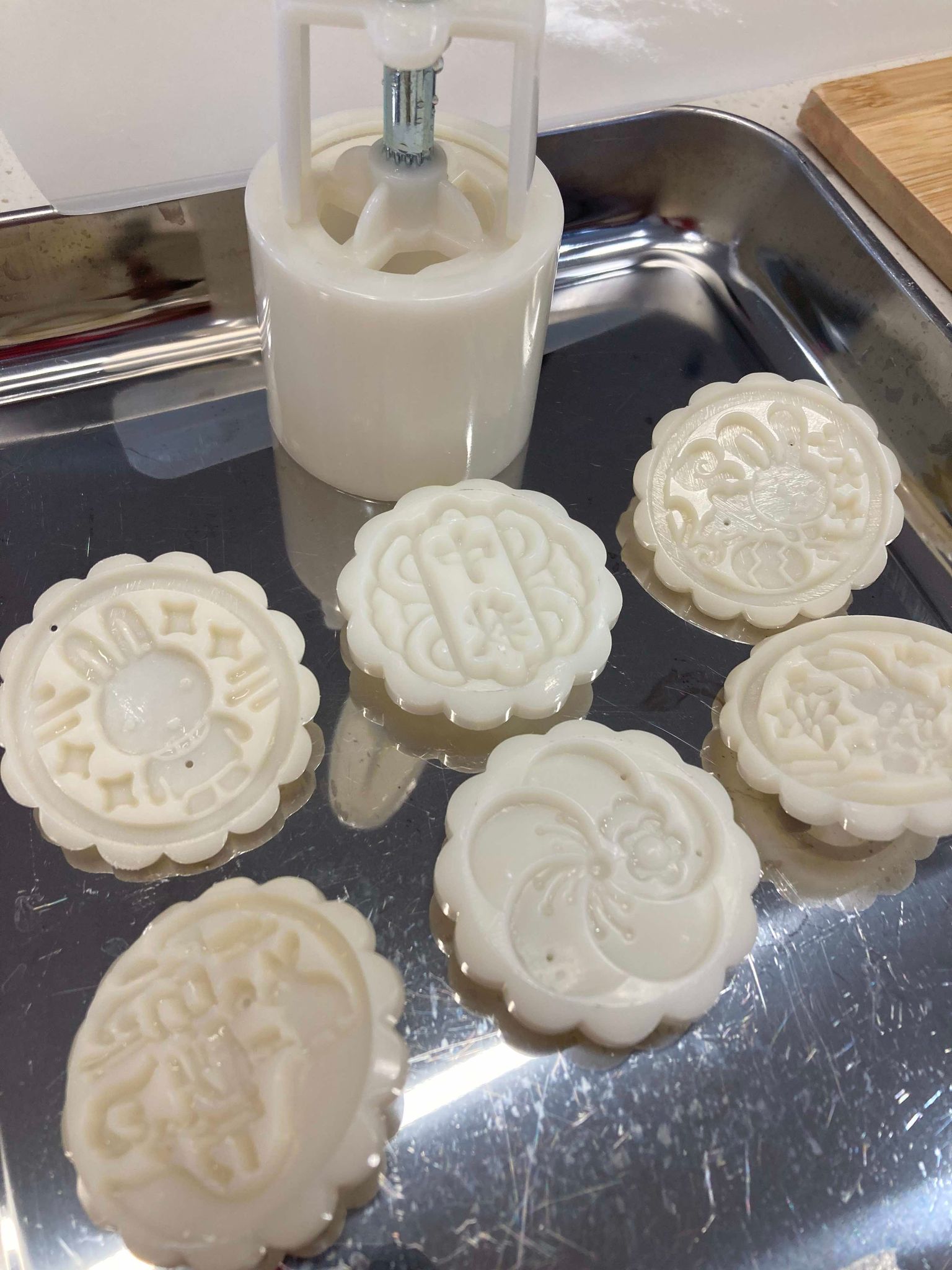 We made two types of mooncakes. One is called Snow Skin Mooncake and the other is called Guangzhou-style mooncake.