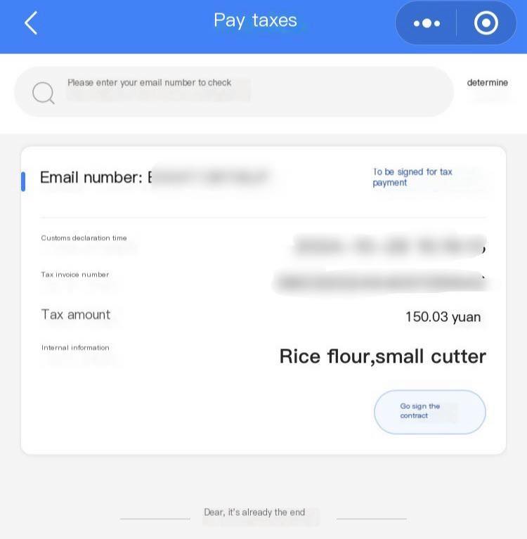The next page showed my tracking number and Customs fee, so I tapped that circled area in red and paid the customs fee via my cellphone. The package was delivered to my place within 3 days.