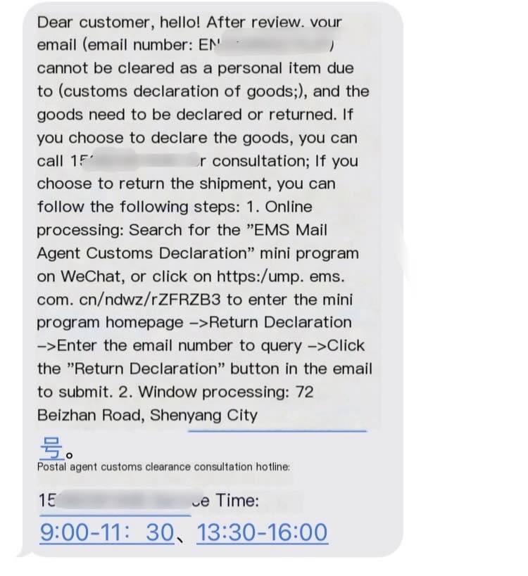 The 2nd time I received a message from the Customs office, it was written like this. 🔽