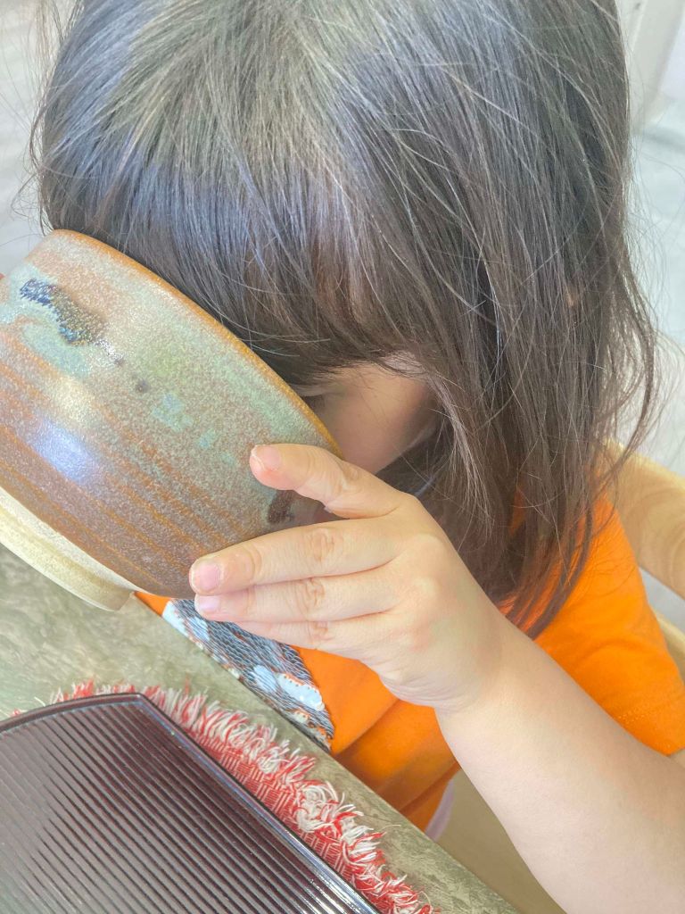 After my daughter sipped a bit of matcha, she said “It’s too bitter, but so yummy!”