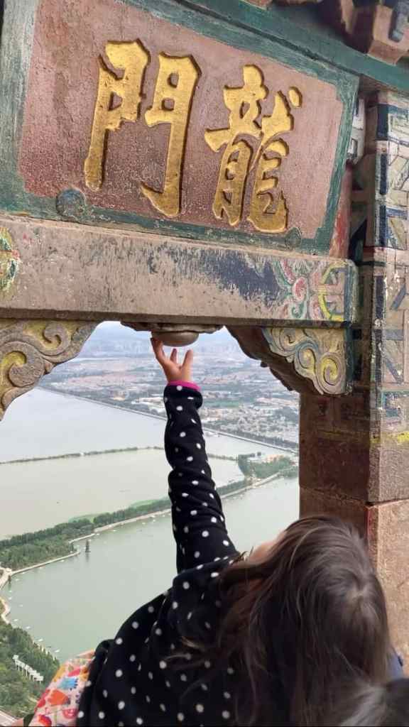 This is the dragon gate. There is a rounded decoration under the gate. It is believed that if you touch the dragon gate, you will pass the exam, get promoted and have a great career. Each of us touched the gate, of course!