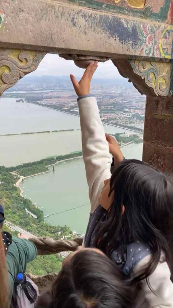 This is Kunming’s largest lake called “滇池(Diān Chí)” that we enjoyed seeing on our way back down the mountain with the ski lift.