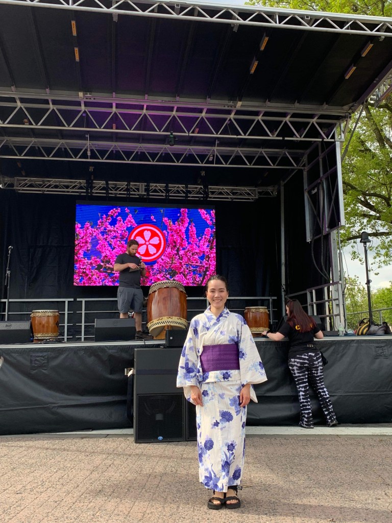 In 2022, I had a lot of opportunities to do my Wagashi making workshops for schools in the US. In the spring in 2023, I presented in English about the Charm of Nerikiri Wagashi on a stage of the Sakura Matsuri Japanese Street Festival, known as the biggest outdoor Japanese festival in the United States.